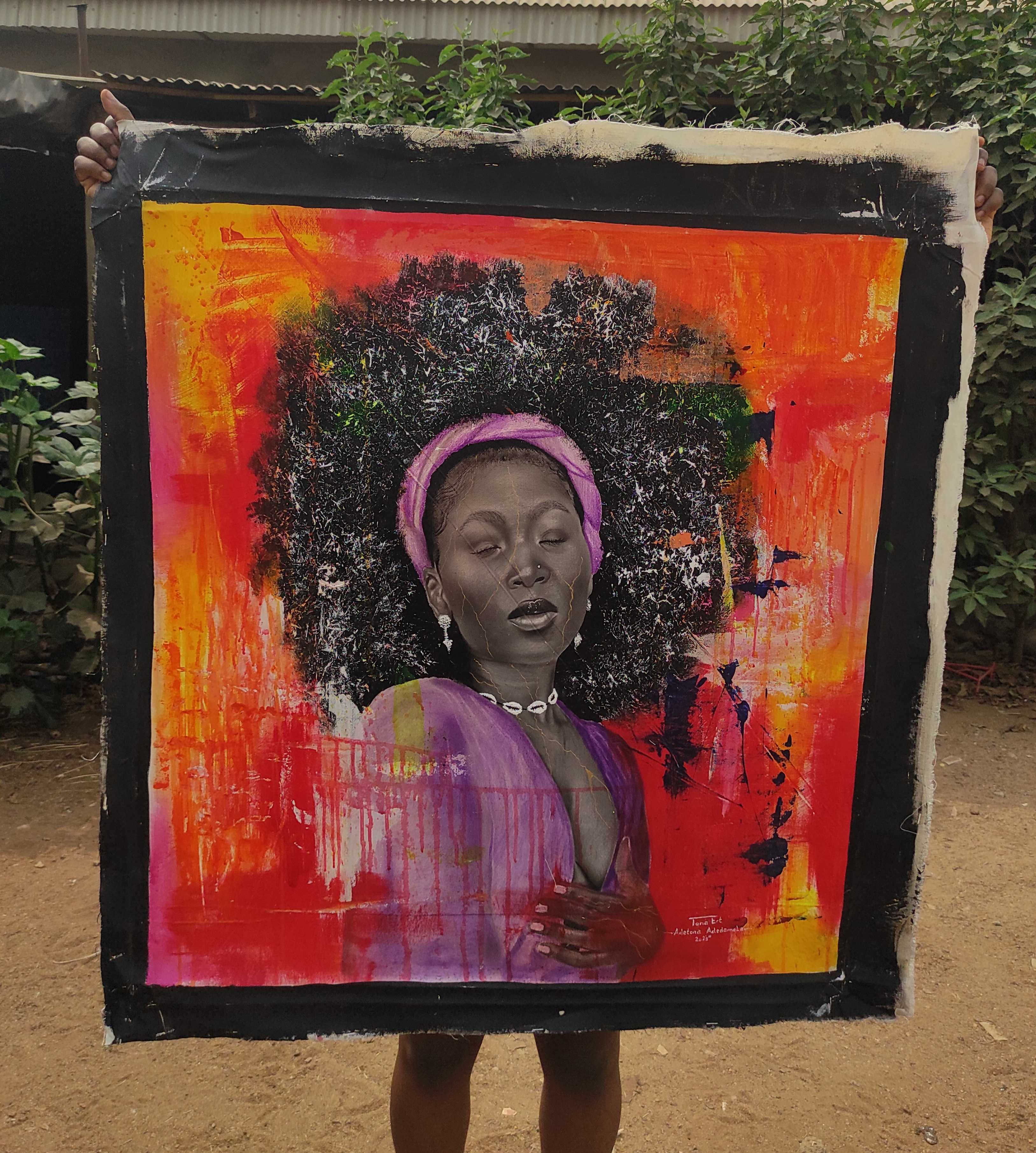 I’m Adetona Adedamola A.J known as TONA_ERT; was born 25th November 1994, based in Lagos Nigeria. A graduate of Covenant University in the year 2018, studied Building Technology. brI have loved art from when I was a child, then playing with clay sand to mould cups, pot etc. Also do some sketches of super strikers. br brI chose to do art because ART is the only thing that give me the inner peace I need, art gives me the platform to speak out about my emotions even without making any sound. brI see art as a means of communicating to others emotionally. brI make art because it helps me tell stories about my personal life also about families and friends experience in life. Some of my work contains inspiration words that gives hope and assurance for a better future. brMy inspiration comes from life experiences. br I draw inspiration from environment, memories, life experiences of family and friends and of my personal self, basically everything that has to do with feelings, emotions, testimonies I try to include deep and strong elements in my work in order to connect more with my viewers. br Sometimes Inspiration comes during church services, whereby something I’ve head hits differently and I just have to sketch it down on my jotter before I loose it. br When I create my art my goal is to pour out my emotions to the world, connecting with my viewers, giving hope to the people who needs it. br Creating Art help me to express myself, opening up my inner self, imagination to the world even without talking, I see art as a means to talk without talking. br Art has helped me to process my emotions and understand my surroundings, it allows me to view life from different perspective. It has also helped me boast my confidence and made me feel more engaged and resilient also on the long run it has helped me work on anxiety, depression and stress. br I love working with mixed medium a lot because it gives me more room to explore. I work with charcoal, pastel, acrylic paints, coffee, spray paints etc. brIn my current works I use coffee to create the human hair, it gives me the feel that I’m in control of the outcome of my life, because when we make coffee we love it differently some prefer it so creamy other not so creamy. brAlso I make the cloth in different colours, the was inspired by the life of Joseph in the bible with his coat of many colours which represented the fact that he is destined for greatness. I believe everyone are destined for greatness. brYou will also find the clouds and a bright sun light which is my symbol of hope, as long as the sun comes up to shine, there is always hope for me to be grate. br br brNew works are filled with emotional portraits with abstract background