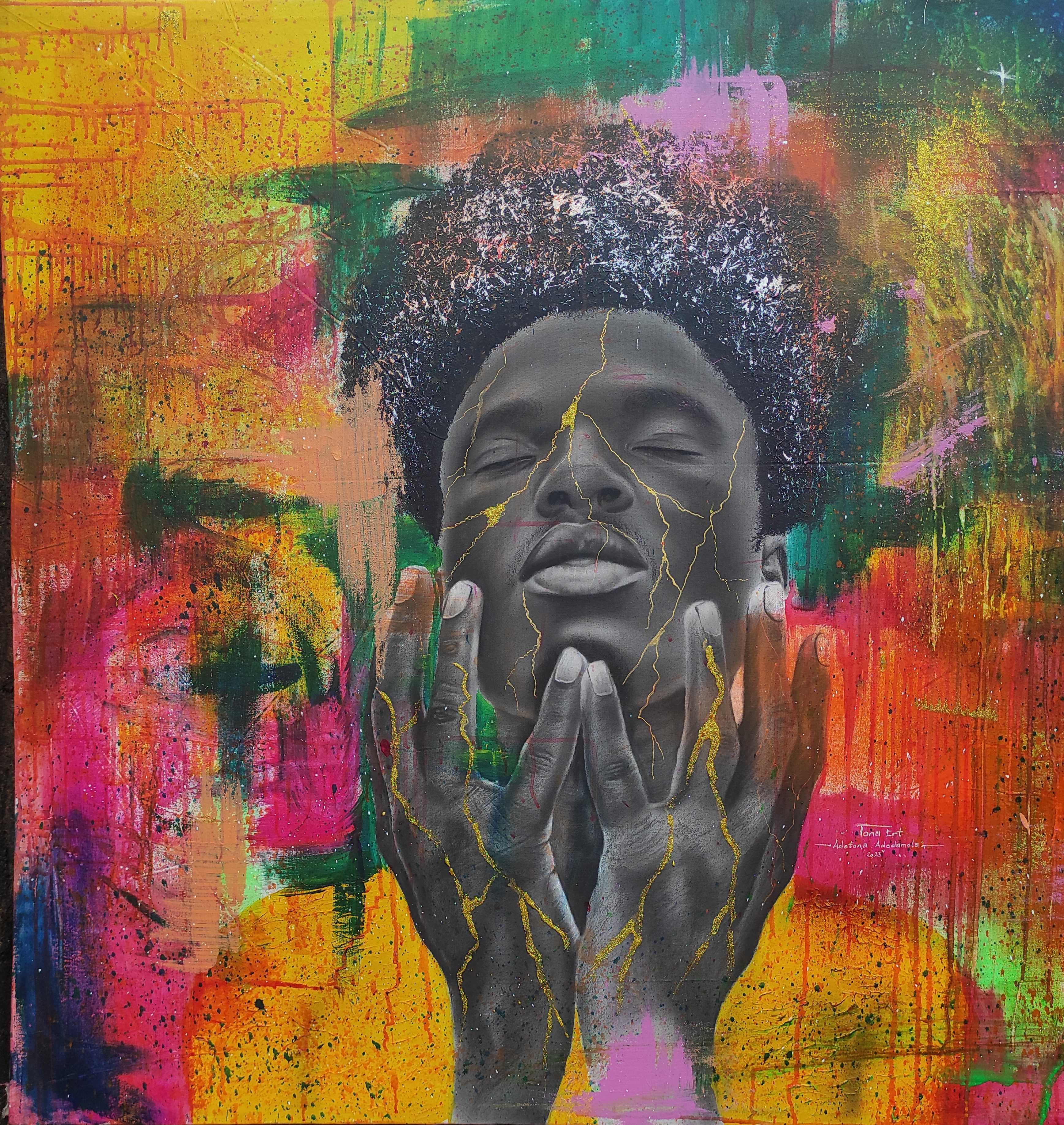 I’m Adetona Adedamola Ayotomiwa Jamiu, born in November 1994, a Nigeria artist based in Lagos I’m known for my emo-realistic mix medium works [charcoal, graphite, acrylic paints, spray paints etc.] of black skinned subjects that embody the emotions associated with life experiences. <br> A graduate of Building Technology at Covenant University in the year 2018. After graduation I worked as a builder for a while before coming into the Art world fully. <br> I have always been into art has a child, loved playing with clay, biro inks, to create art. Started working on my career in the year 2015 while I was still in university, then all I did was make portraits for people in order to help myself financially. Was awarded for most outstanding artists in school in 2018. Participated in few online art competitions. <br> After graduation I decided to go deeper into art so I started watching videos online, acquiring more art material and practicing every day and night. I love working with mix medium because it gives me more room to express myself has an artist, I work with charcoal pencils, graphite pencils, acrylic paints, coffee, spray paints. <br> I would call my kind of art an Emo-realistic art because I try to depict emotions in every art work, create, all this while I have only been working on paper, moved to canvas 2023 when I took my art career to a professional level. <br> My Inspiration comes from my environment, memories, life experiences [personal/family and friends], what as kept me going is the catch phase I get while praying back in school chapel 2015 which say “Never Say Never For All Is Well\ This as been the key word keeping me which I try to deplore into every of my works, giving hope for a better tomorrow to my viewers who feels down . <br> I’m working towards the point where people who view my works finds peace, joy, the courage and string to move on, not considering what they have been through or passing through.