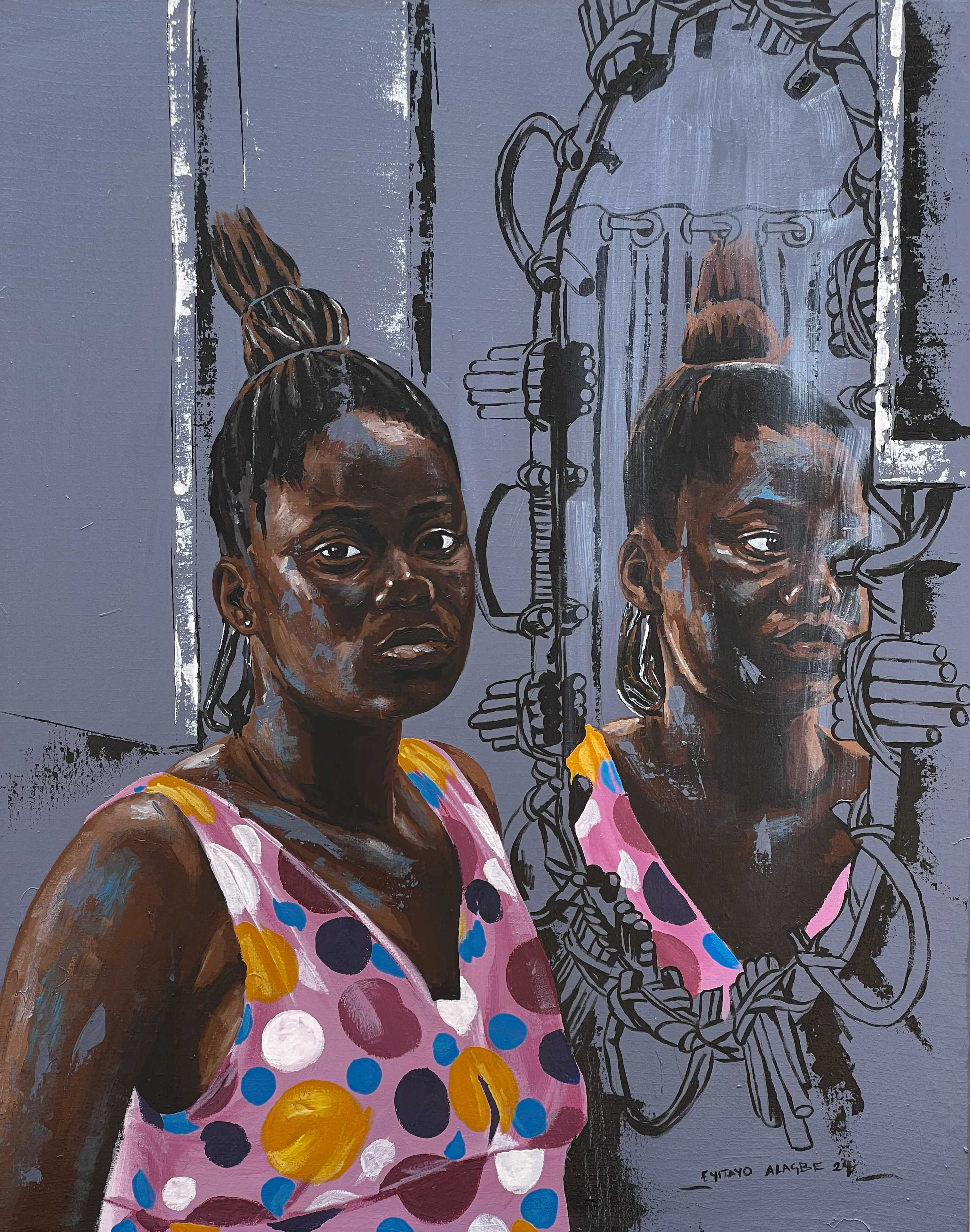It represents the harmonious blending of diverse cultural influences and celebrates the beauty and strength of Afrocentric aesthetics. The title suggests a vibrant and dynamic composition that showcases the richness and complexity of the Afro heritage, symbolizing the artistic expression and resilience of the figure portrayed in the artwork.