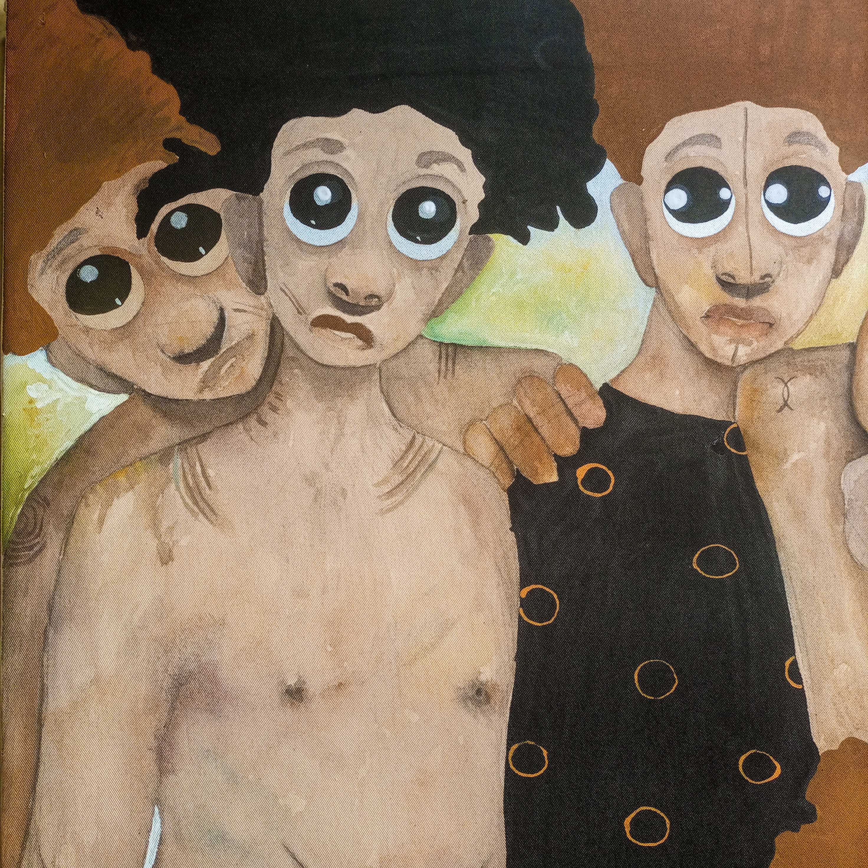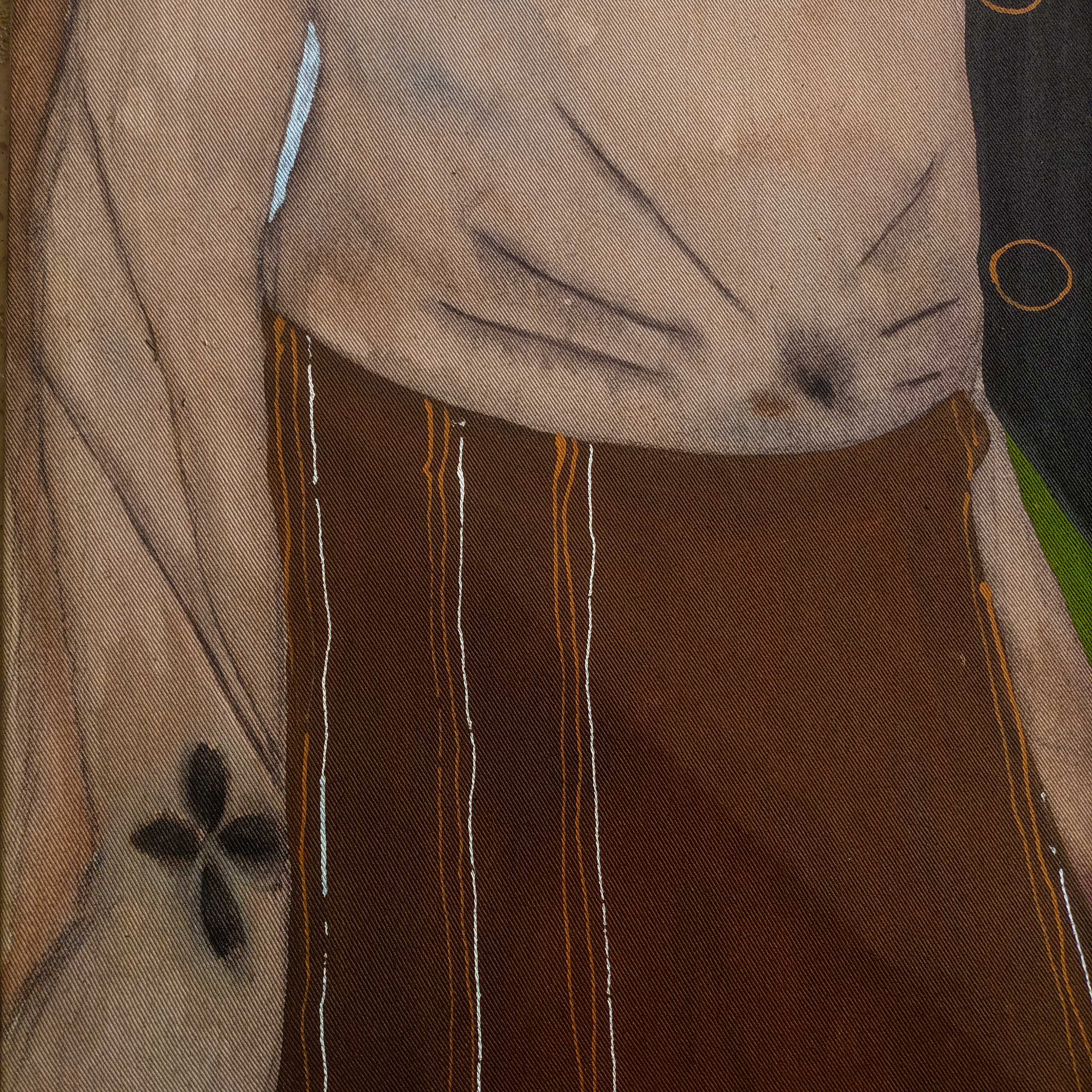 Inspired by the traditional Igbo art form of Uli, this painting becomes a silent dialogue between past and present. The figures, layered and entangled, wear these marks not as ornament, but as witness—evidence of ancestry, culture, and quiet resilience. Uli is traditionally ephemeral, drawn with fluid lines and earth pigments on the skin or walls, destined to fade. Yet in this work, I preserve its spirit within a contemporary form, letting each stroke echo the grace, discipline, and philosophy it carries. The wide, searching eyes of the figures speak of longing, remembrance, and the silent inheritance we all carry. Their bodies, bearing Uli-inspired patterns, remind us that identity is not fixed—it is drawn, erased, and drawn again. Through ULI, I explore the emotional weight of heritage—not just what is remembered, but how it lives on in flesh, form, and gesture.