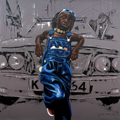 The girl, poised yet curious, represents the beauty of childhood caught between play and awareness. Her surroundings speak of learning and growth, while the caution tape reminds us how society shapes, limits, or guards that process.